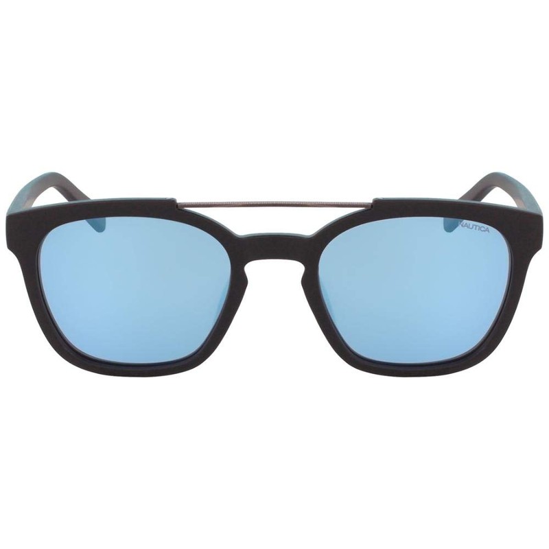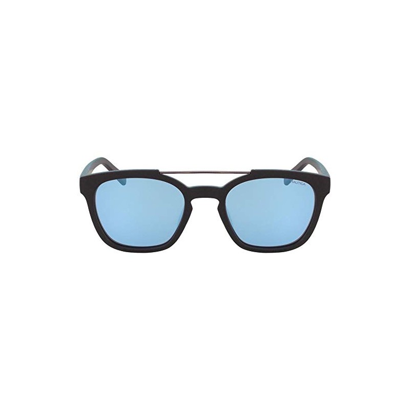 Nautica Men's N3638SP Rectangular Sunglasses, Matte Black/Blue Polarized, 54 mm