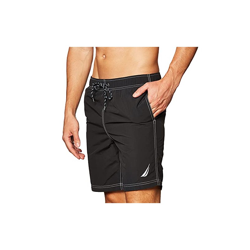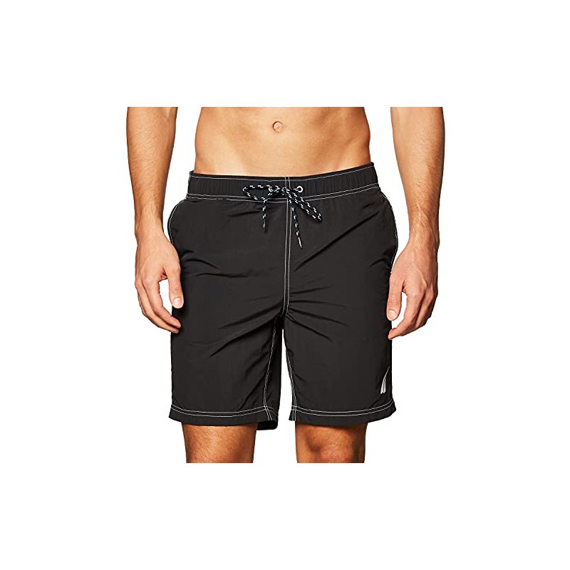 Nautica Men's Solid Quick Dry Classic Logo Swim-Trunk, True Black, X-Large