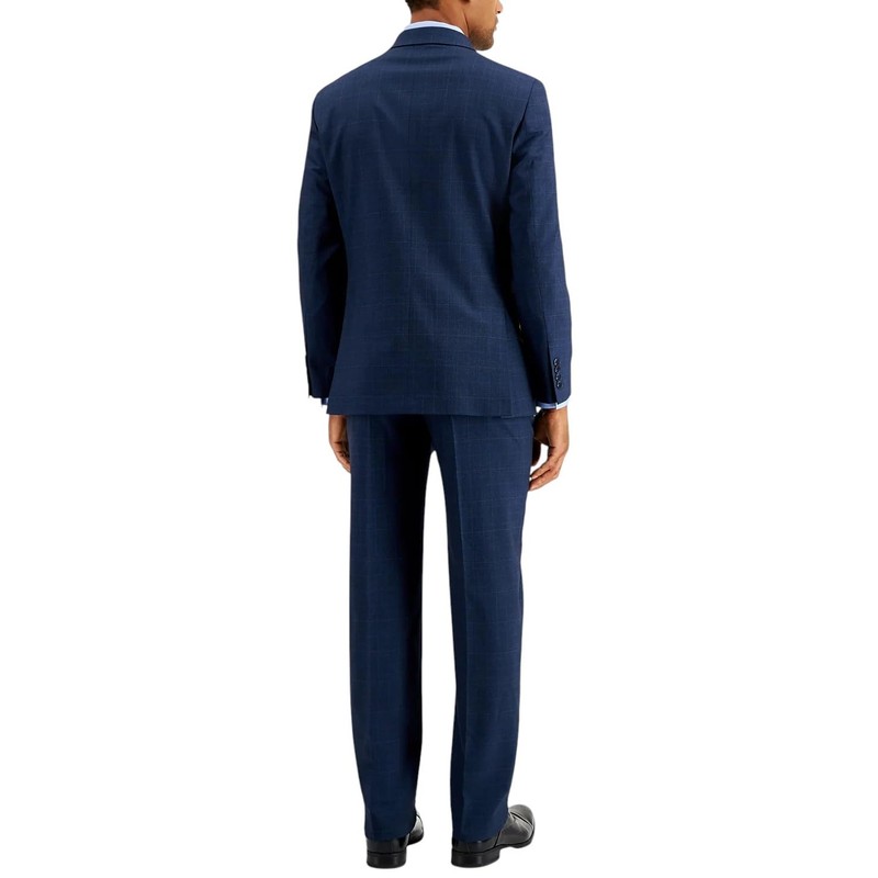 Nautica Mens Modern fit 2 Piece Suit 48 L / 42 Waist Blue Plaid Stretch