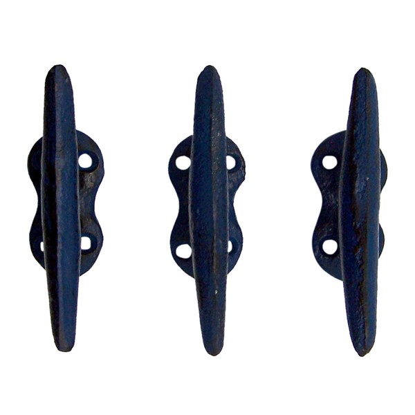 Wowser Nautical Blue Cast Iron Boat Cleat Wall Hooks, 3.5 Inches, Set of 3