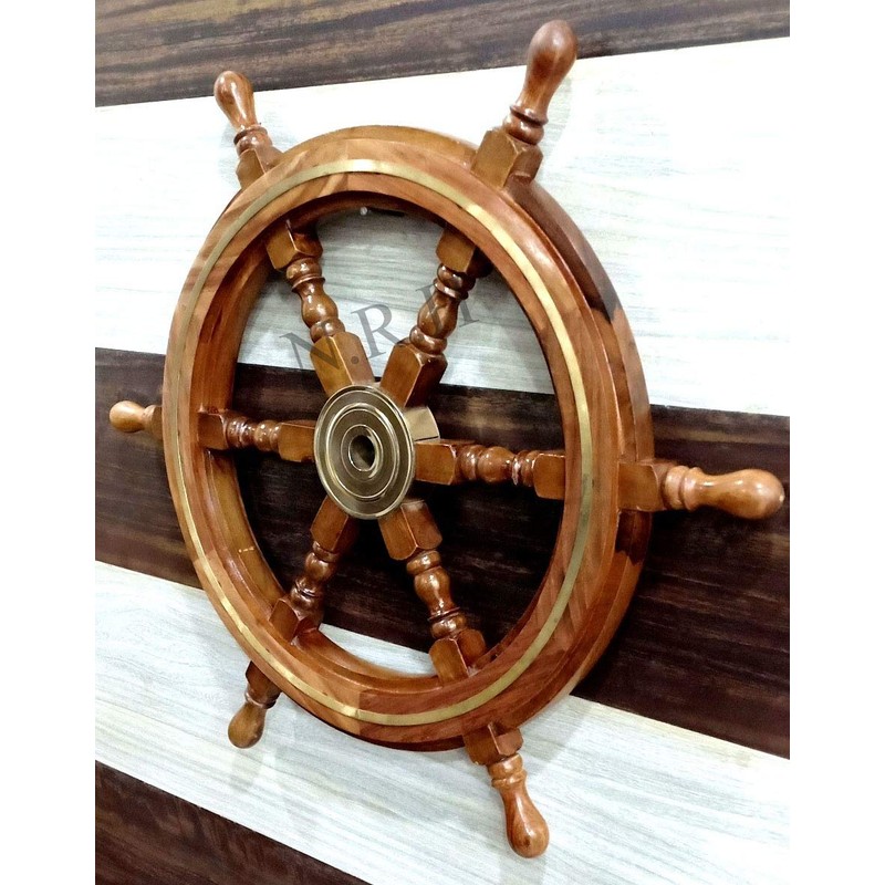 • Steering Wooden Ship Wheel With Brass Ring & Hub