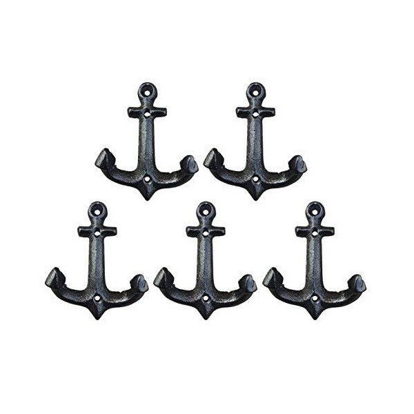 Facaler Nautical Cast Iron Ship Anchor Weathered Nautical Wall Hooks Coat Hook, Screws Included (5 PCS)