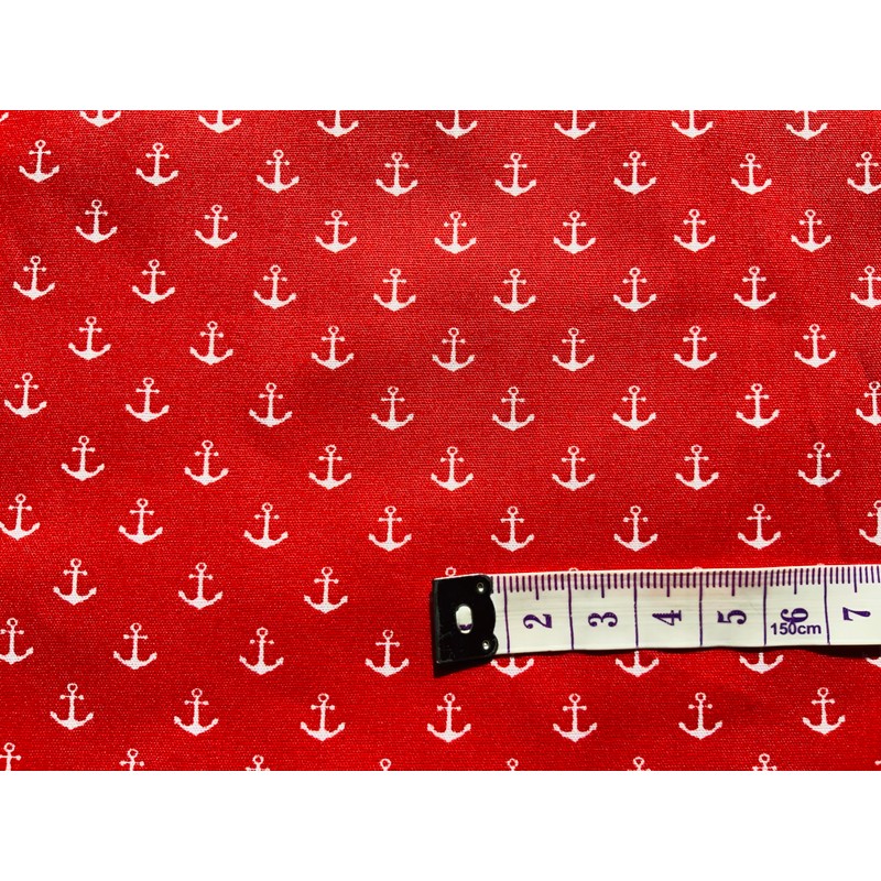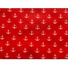 Nautical Fabric – 100% Cotton Printed Material, 44” Wide – Maritime Themed Fabric by The Metre – Ideal for Crafts, Quilting, Dressmaking (White Anchor on Red, Metre)