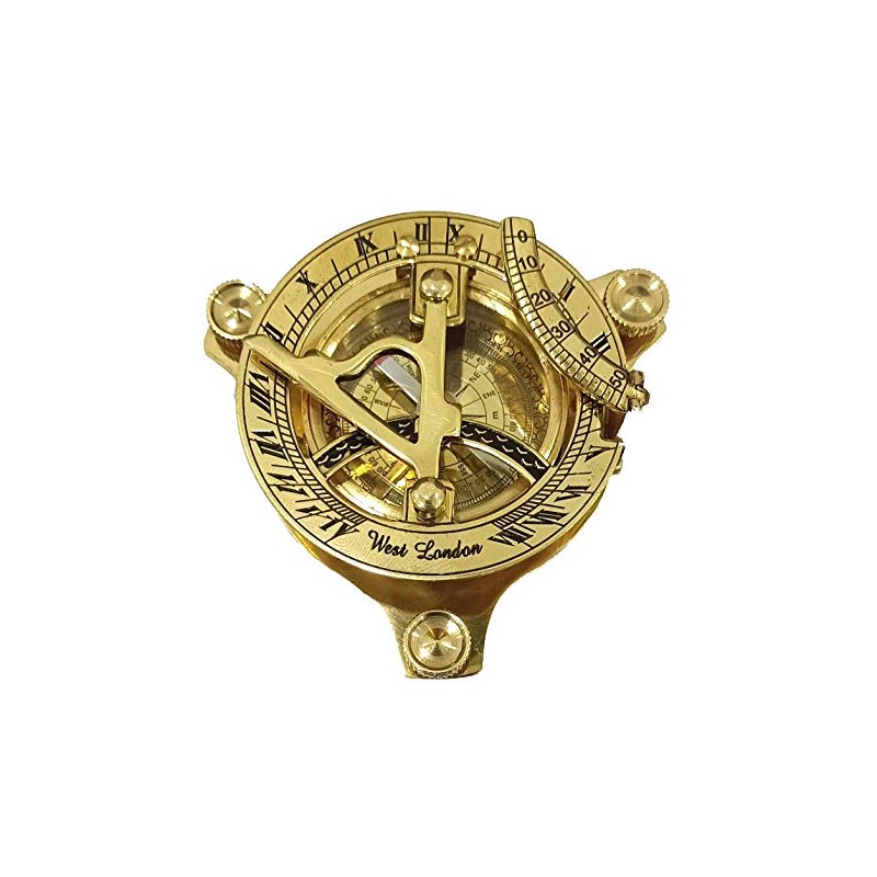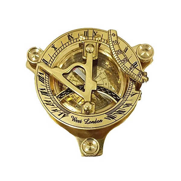 - BRASS SUNDIAL COMPASS -Solid Brass Pocket Sundial - West London