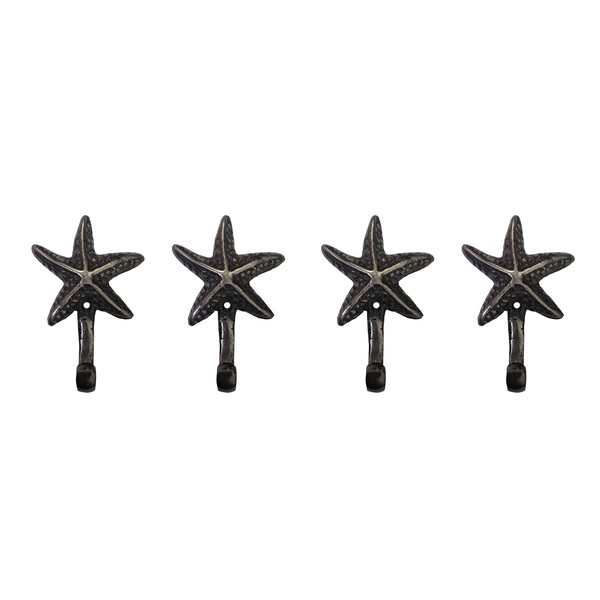 Nautical Tropical Polished Iron Starfish Wall Hook, Set of 4