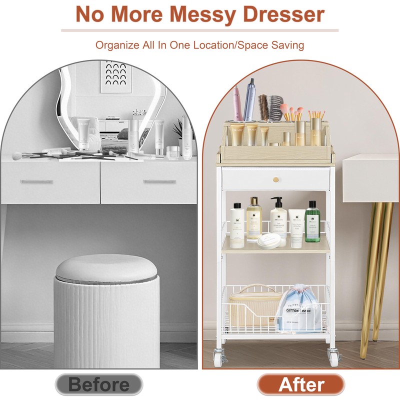 - 【Excellent Gift】This practical and ingenious vanity storage cart is a must-have for everyone. It is an excellent choice for Mother's Day, birthdays, Valentine's Day, Christmas and girlfriend gifts