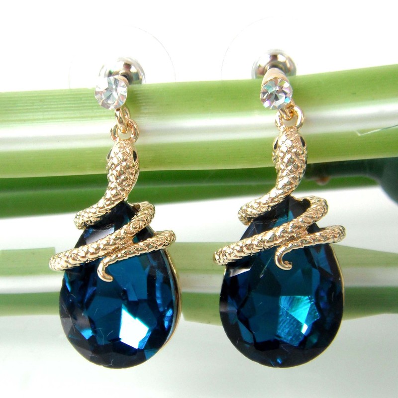 Navachi 18K Gold-Plated Crystal Cubic Zirconia Snake-Shaped Stud Earrings, blue