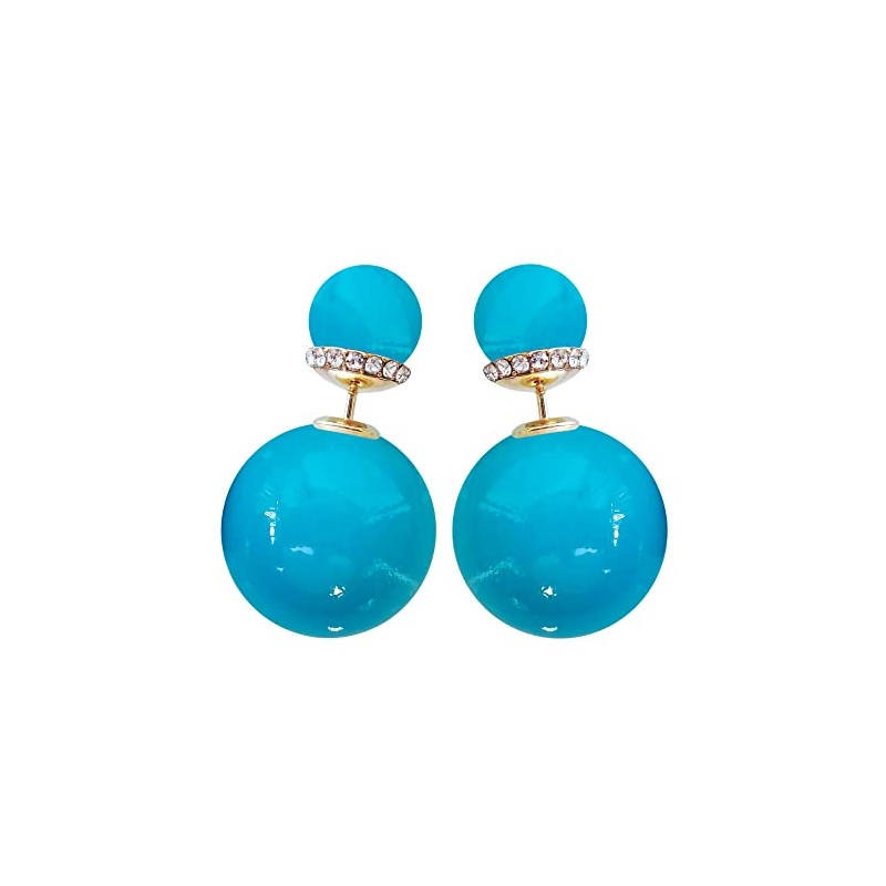Navachi 18k Gold Plated Double Sided Blue Faux Pearl Beads Womens Fashion Elegant Candy Crystal Stud Az2812e Earrings
