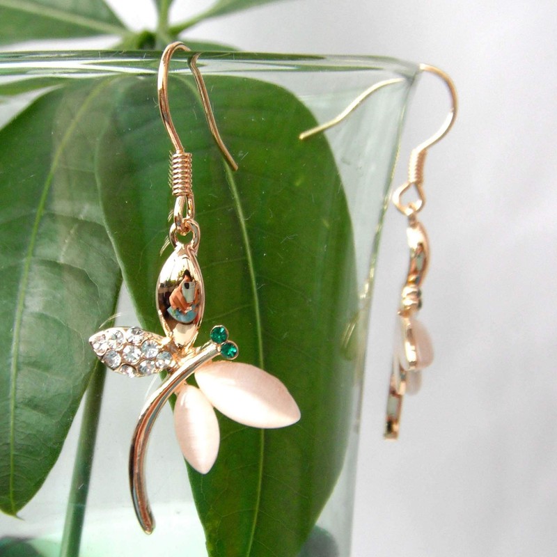 Navachi 18k Gold Plated Multicolor Crystal Created-Opal Dragonfly Dangle Earrings, Crystal, Created Opal