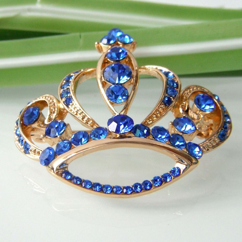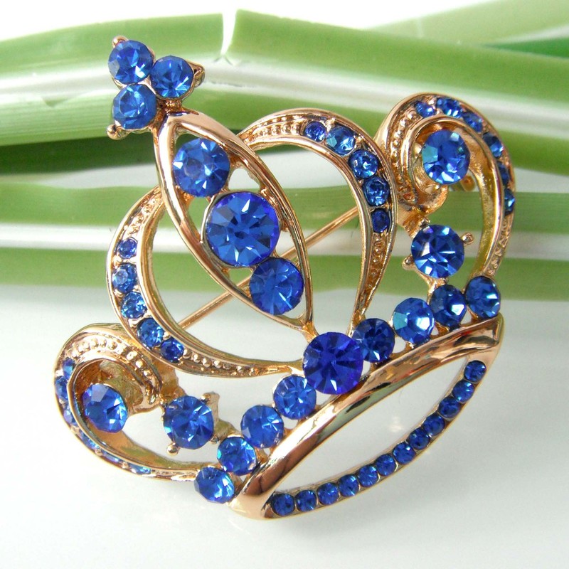 Navachi 18k Gold Plated Multicolor Crystal Royal Crown Brooch Pins