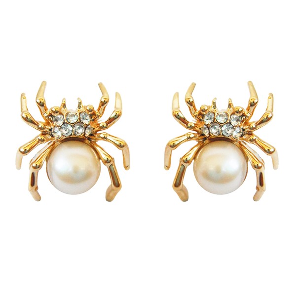 Navachi 18k Gold Plated White Ball Pearl Crystal Spider Az1299 Ear Stud Earrings
