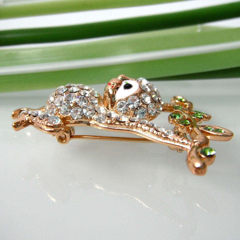 Navachi 18k Gold Plated White Crystal Monkey Az7134b Brooch Pin