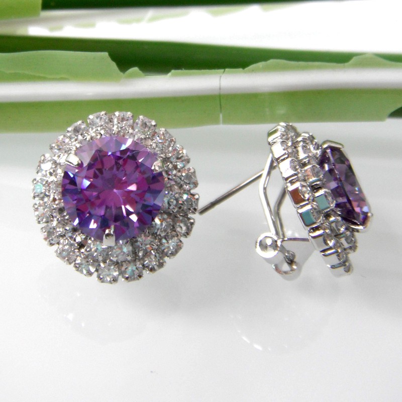 Navachi 18k White Gold Plated Purple Round Zircon White Crystal Omega Back Az2823e Stud Earrings