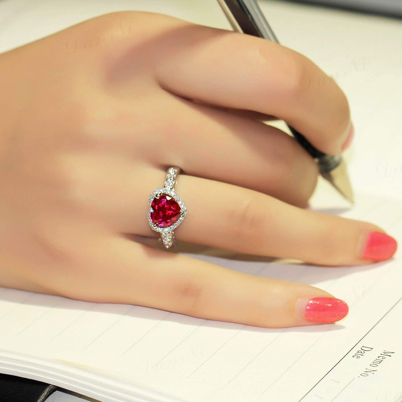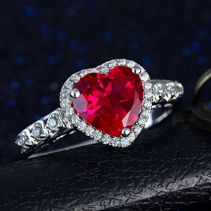 Navachi 925 Sterling Silver 18k White Gold Plated 2.5ct Heart Ruby Emerald Az9208r Rings(Sizes M)