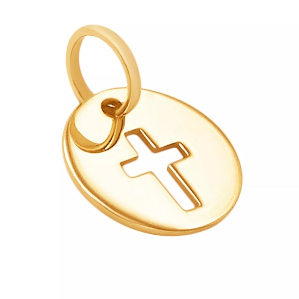 Navada 10k Solid Yellow Gold Cross Laser Cut Delicate Beautiful Round Charm Pendant