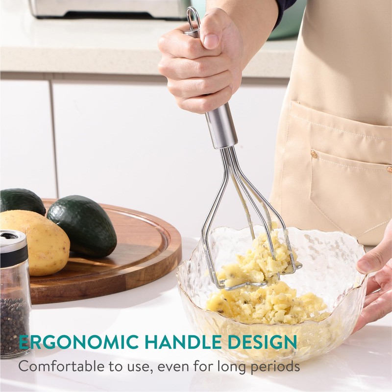 - COMFORTABLE AND EASY TO USE: With a comfortable ergonomic handle, this food masher is designed to give you full control while mashing. It's easy and comfortable to use, making your cooking more enjoyable.