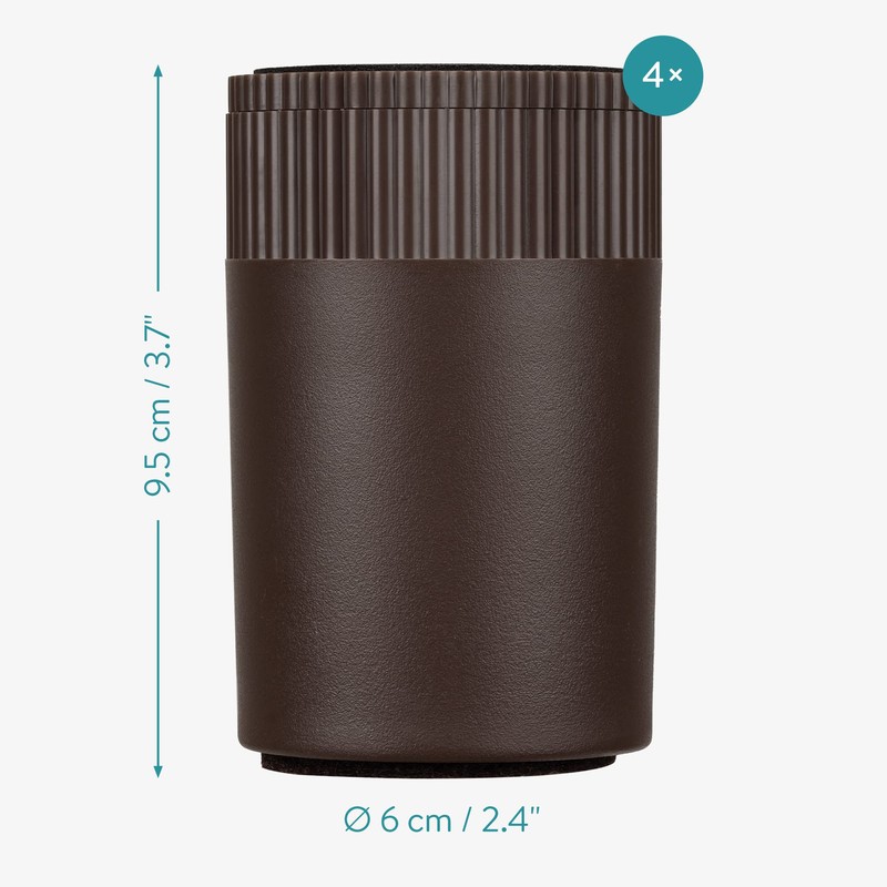 • PRODUCT DETAILS - 4 x adjustable furniture lifters in size L. Dimensions: 6 x 9.5 cm. Material: ABS, TPU. Adjustable height: 9.5 - 10.5cm. Weight capacity: 500 kg
