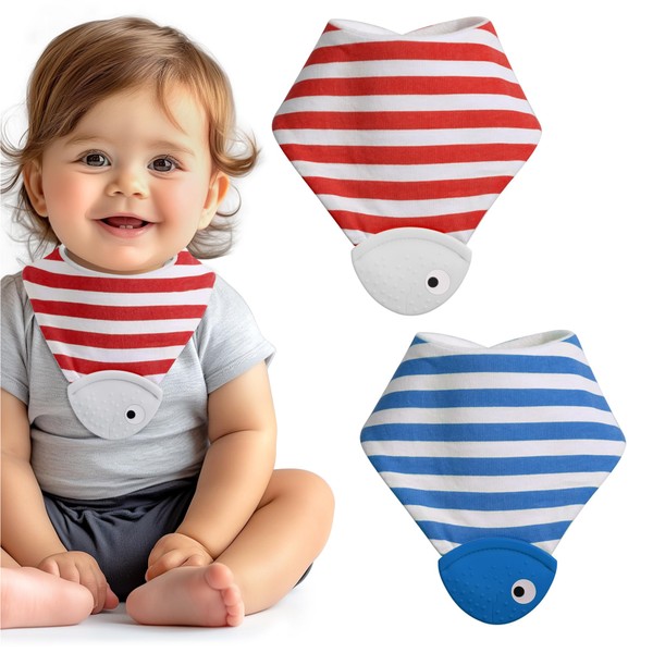 - Hygienic Teething Solution: This bib set comes with 2 colourful bandana bibs fitted with a teething corner, which is designed to soothe the gums and help with the teething process.