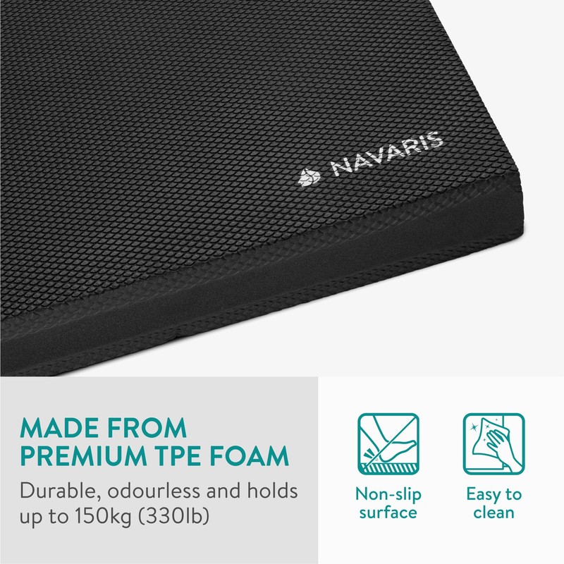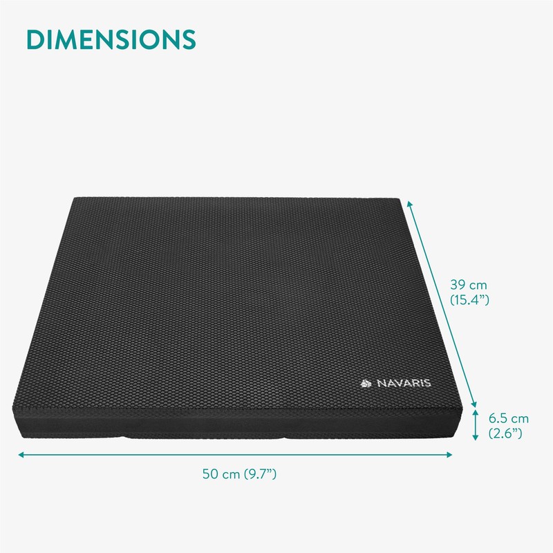 The Navaris balance pad (50 x 39 x 6.5 cm) is perfect for your daily training. Made of high-quality TPE foam, it provides a durable and resilient base for yoga, pilates and rehabilitation exercises. The non-slip, ribbed surface on both sides ensures a secure stand, while the easy cleaning makes handling easier. Ideal for strengthening balance and protecting the joints!