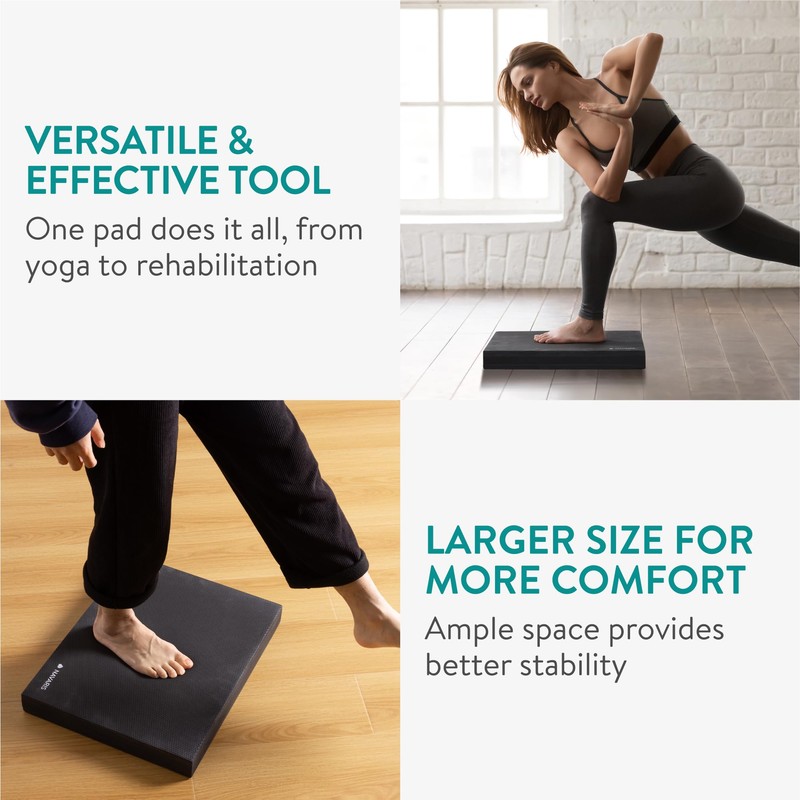 - Everything in the set: balance pads made of soft TPU foam are suitable for improving balance, coordination and stability. In addition, you can train arms and shoulders with the fitness cushion (50 x 39 x 6.5 cm).