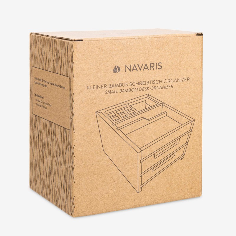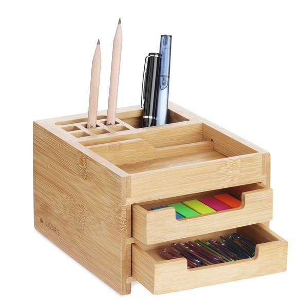 Navaris Bamboo Desk Organiser Small - with Pen Holder and Drawers - Storage Pens Scissors Paper - Desk Organiser for Office