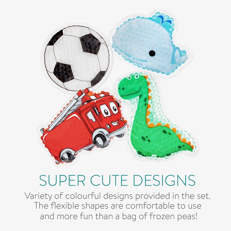 - Warm or cold: the children's cool packs (dino, whale, fire brigade and ball) can be used for cold and warm treatment.