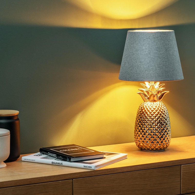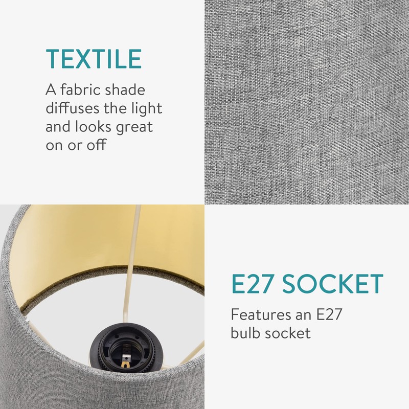 - STYLISCHER TISCHLAMPENSCHIRM: Tausche alte Schirme mit einem neuen aus und fge Deiner Tischleuchte mit E27 Fassung eine tolle neue Komponente hinzu. Der Stoff aus grauem Leinen und die gold-folierte Innenseite peppen Deine Lampe optisch auf.