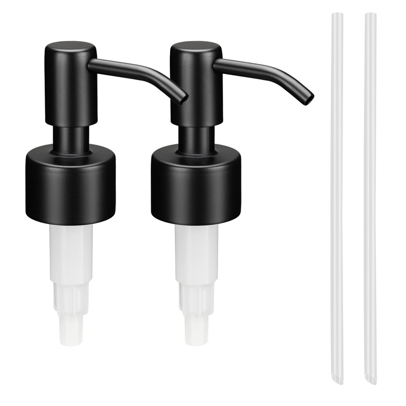 Navaris Replacement Soap Dispenser Pumps (Pack of 2) - Stainless Steel Metal Pump for 1" to 1 1/8" (26mm to 28mm) Bottle Tops - Design 1, Black