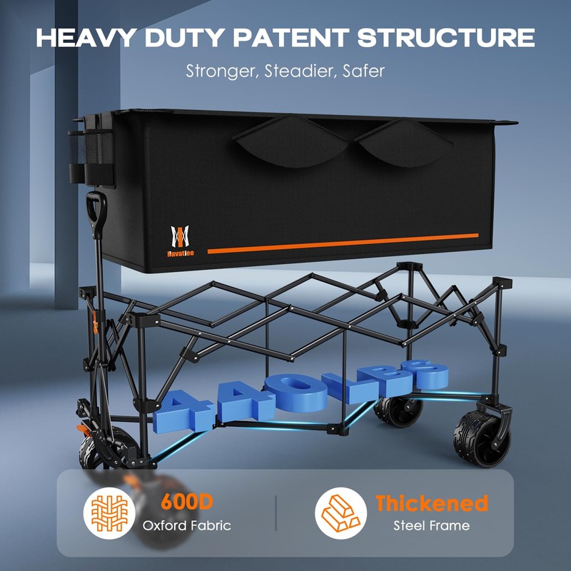 • BUILT TO LAST WAGON : Built with durability and sustainability in mind, our beach wagon comes with a high-strength steel frame and durable 600D oxford fabric. Solid frame construction won't buckle or lose shape, which could load up to 220LBS. With a winning combination of performance, style and build quality, Navatiee wagons bring relaxation and joy to wagon users around the world.