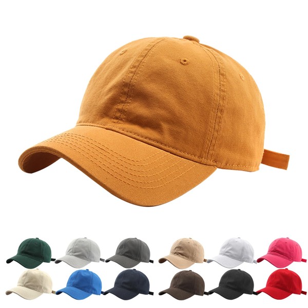 NAVIBULE Men's Plain Cap, Large Size, 100% Cotton, Baseball Cap, Lightweight, UV Protection, Unisex, Cotton, Adjustable, yellow