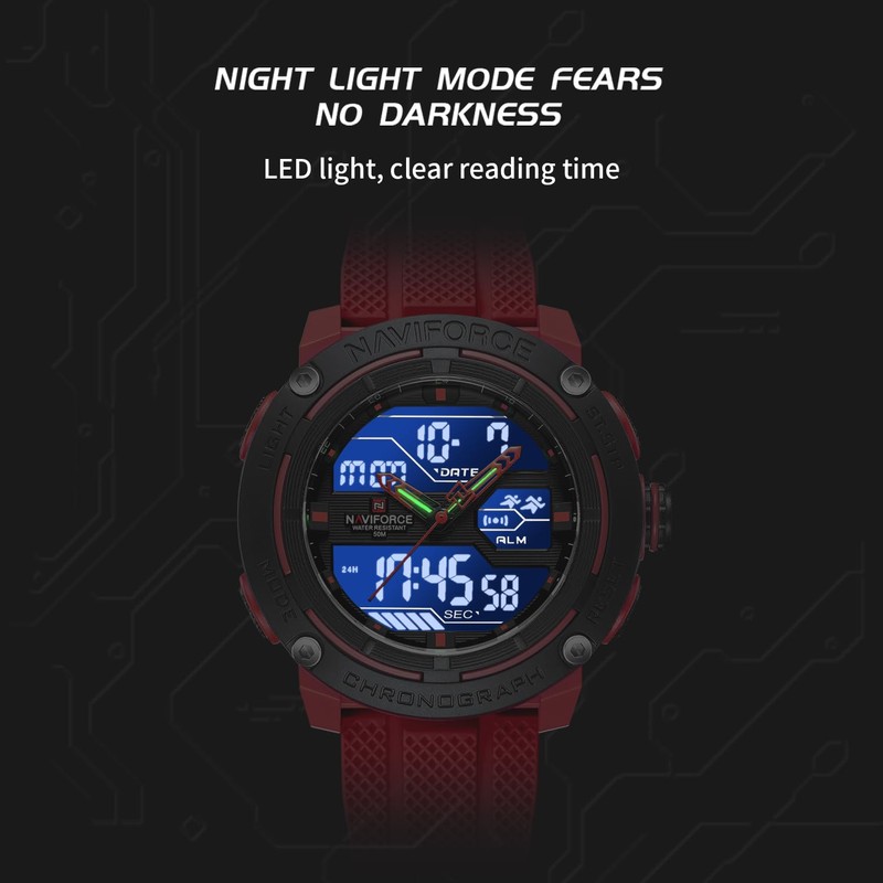 NAVIFORCE 5ATM Waterproof Sport Watches for Men Silicone Band Quartz Analog Digital Alarm Clock Chronograph Luminous Wristwatch