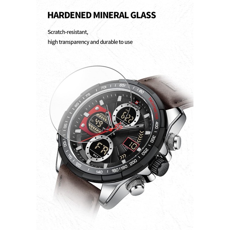 NAVIFORCE Men's Military Digital Watches Analog Quartz Waterproof Watch Sport Multifunctional Leather Wristwatch
