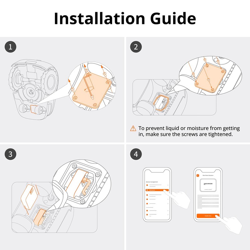 - Stay connected with Navimow Access+: The accessory that offers seamless cellular connectivity. When faced with weak Wi-Fi signals, you can rely on the stable cellular connection provided by Navimow Access+. Enjoy uninterrupted management of your robotic mower from any location, whether you are at home, at work, or on vacation.