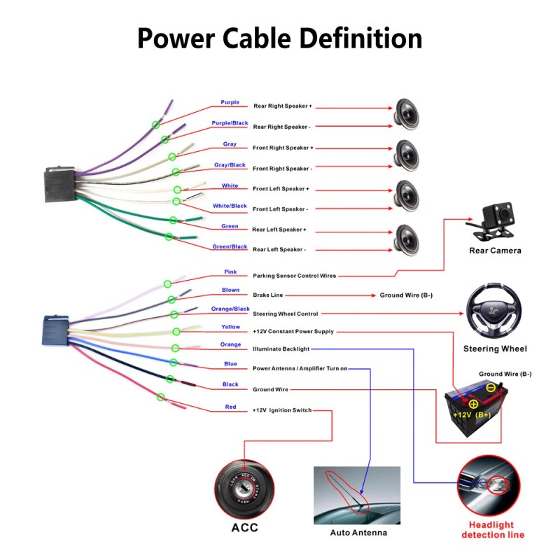 7.This input automatically powers the rear camera when the vehicle shifts into reverse and displays the image on the unit's screen. Rear camera sold separately