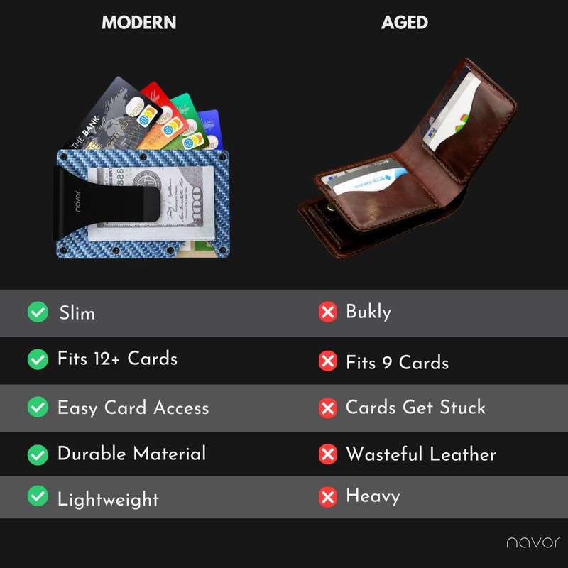 - ๐ฆ๐๐๐ ๐๐ก๐ ๐๐๐๐๐ง - This metal wallet for men is lighter and thinner than a typical wallet, weighing only 70g, yet it has a large capacity that allows it to accommodate 1โ12 cards securely. This lightweight & ultraslim wallet can even hold a single card, however, it won't slip off, thanks to its strong elastic band. The outer notch allows you to effortlessly push out the cards.
