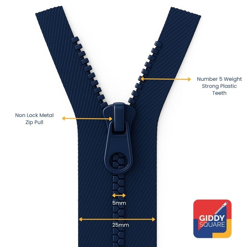 Navy Blue 30" (76cm) Heavy-Duty Chunky Zip – Open Ended, Machine Washable Plastic Teeth, Perfect for Coats & Outerwear by Giddy Square