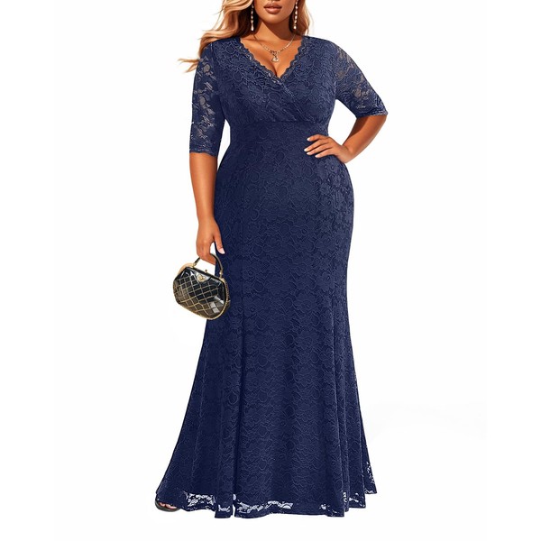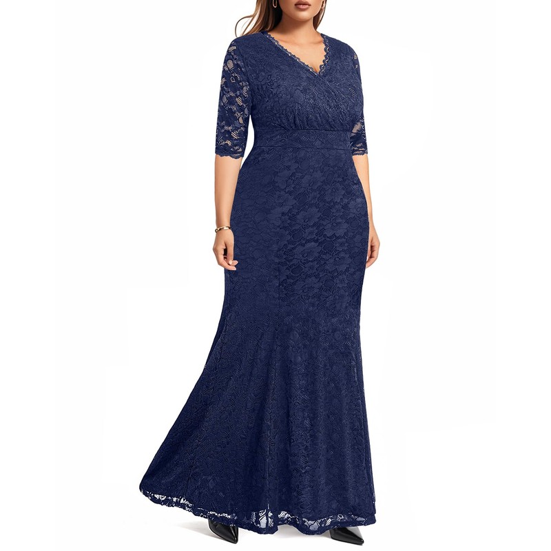 Navy Blue Dress for Women Plus Size Formal Evening Gown Mother of The Bride Prom Wedding Guest Long Mermaid Lace Dresses