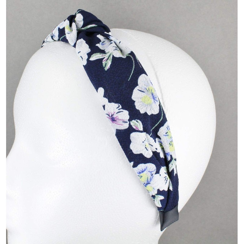 Navy blue flower headband Turban Knot knotted floral fabric covered grip teet...