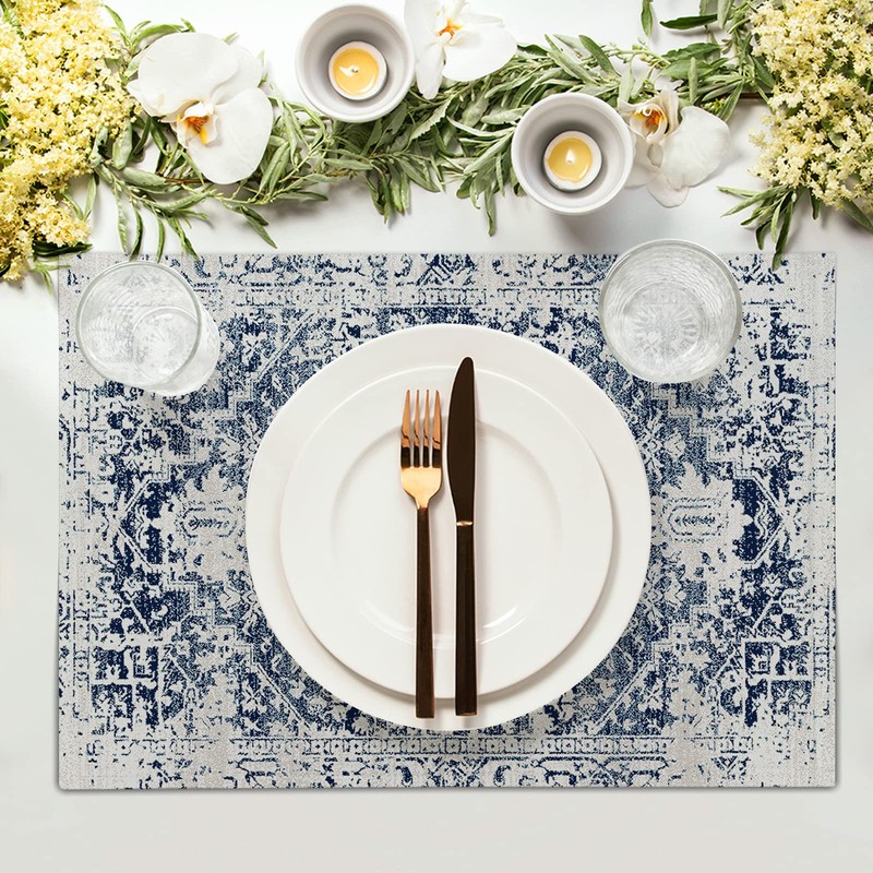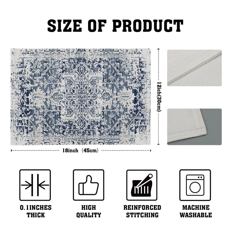 - ★【Double-Sided Printing】:The washable placemats are double-sided printing, high-definition printing technology, vivid colors, and clear patterns. These Navy Blue Grey Ethnic Boho plate mats withBohemian Carpet Vintage Graypatterns are colorful and clear, adding more fun to your home.