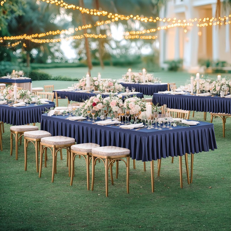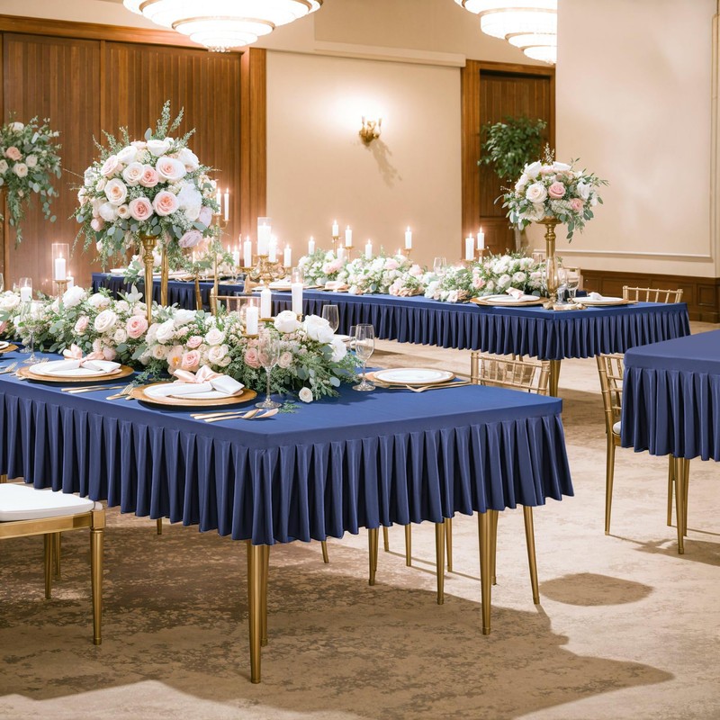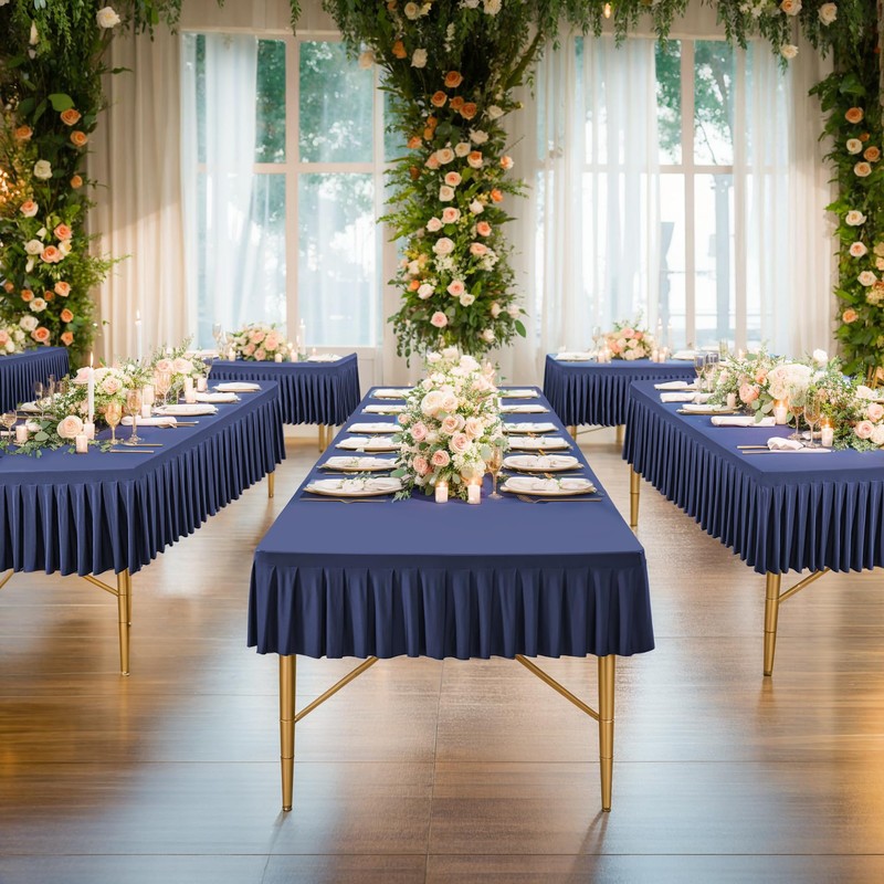 - 【Widely Used Tablecloths Rectangular】This navy blue fitted tablecloth is a great choice for both casual and formal events: graduation, retirement, birthday parties, wedding reception, trade show, office party, everyday use, family party and celebrations.