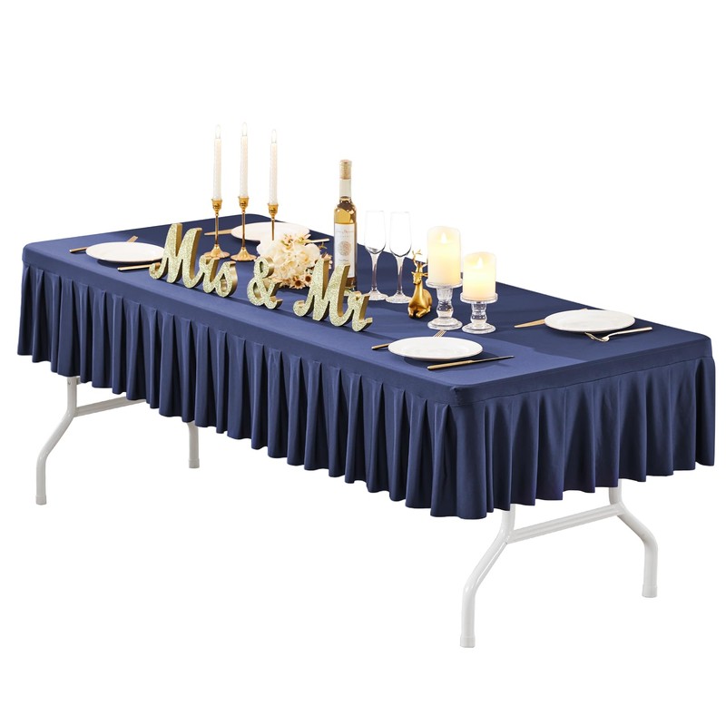- 【Stretch Fitted Tablecloths for 8 Foot Tables】Our navy blue tablecloth size is 96" L x 30" W x 11" H, fit for 8 ft rectangle tables well and never slip off. These navy blue spandex table covers are easy to put on and take off without ripping.