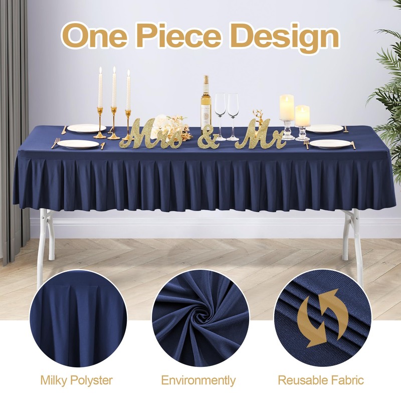 - 【New Style Pleated Tablecloth with Skirt】Say goodbye to the long table skirt that would dragged on the ground! Our one-piece tablecloths are the latest design that not only makes seating easy, but also creates an elegant look.