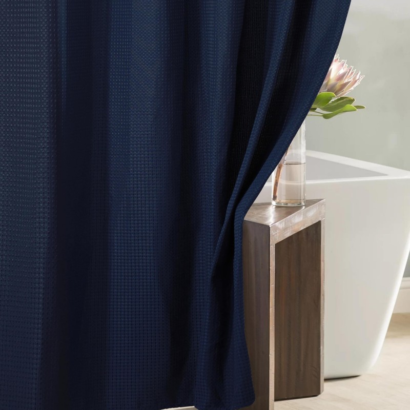 - SUPERIOR QUALITY & DURABLE: this 256 GSM thick blue waffle shower curtain offers a soft "cotton-like" feel and weighs about 1.2 pounds more than typical 80 GSM curtains. Its heavyweight fabric ensures better privacy and allows the curtain to drape beautifully; featuring rust-resistant metal grommets, it fits most shower curtain hooks and prevents tearing; the durable fabric and reinforced hem resist shrinkage and maintain its shape over time