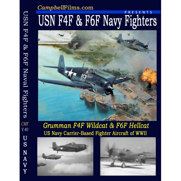 4th Films "F4F and F6F Newsreels ". This is a collection of Newsreels of the F4F Wildcat and the F6F Hellcats by Grumman. 1st, GM's 2500 Wildcat Built. 2nd, F4F Pilot Checkout. 3rd, Navy Planes sweep Manila Sea. 4th, Navy Planes hit China Sea. 5th, Captured "Jack" compared with the F6F. 6th, Captured "Frank" compared with the F6F. 7th, F6F used as robot Missiles. 8th, F6F remotely piloted across Atlantic. Great stuff. 20:03 Min's