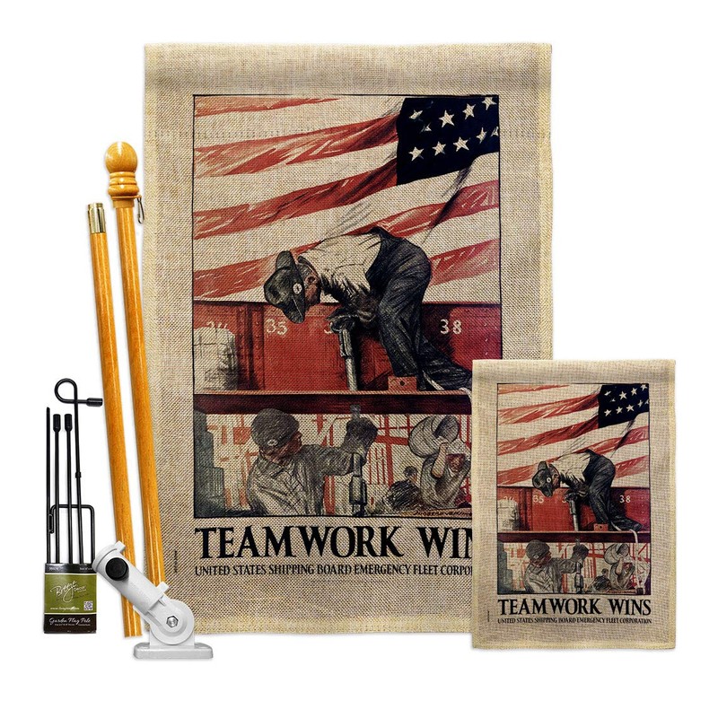 Navy Teamwork Wins Burlap Garden House Flags Kit Armed Forces USN Seabee United State American Military Veteran Retire Small Decorative Gift Yard Banner Double-Sided Made In USA 28 X 40