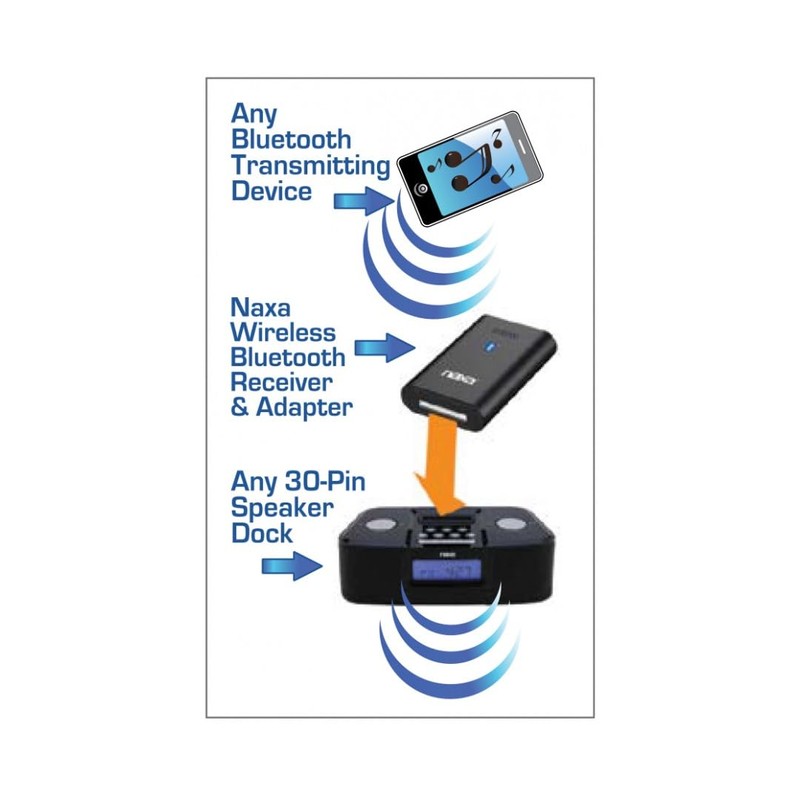 NAXA Electronics NAB Bluetooth Wireless Receiver and Adapter for Music System and Docking System with 30-Pin Connector (Black)
