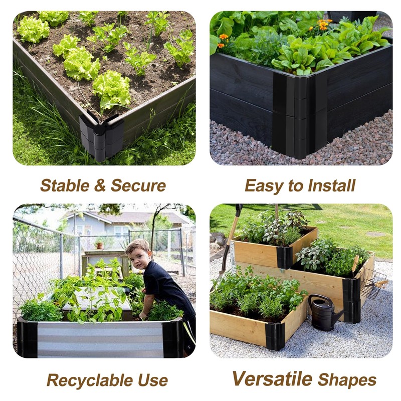 - Widely Application: These raised bed corner brackets can be used to build raised garden beds of various sizes and shapes to suit different gardening needs. Our upgraded bed corner brackets for wood can be used as flower beds, but also to make tall flower stands, community gardens, planter boxes outdoor and vegetable garden.