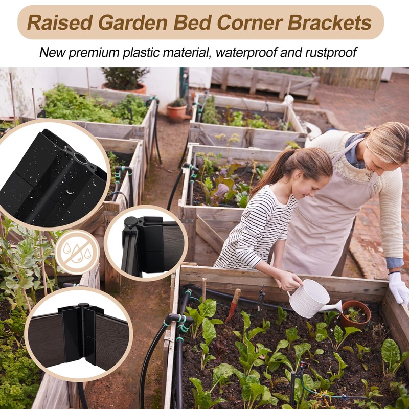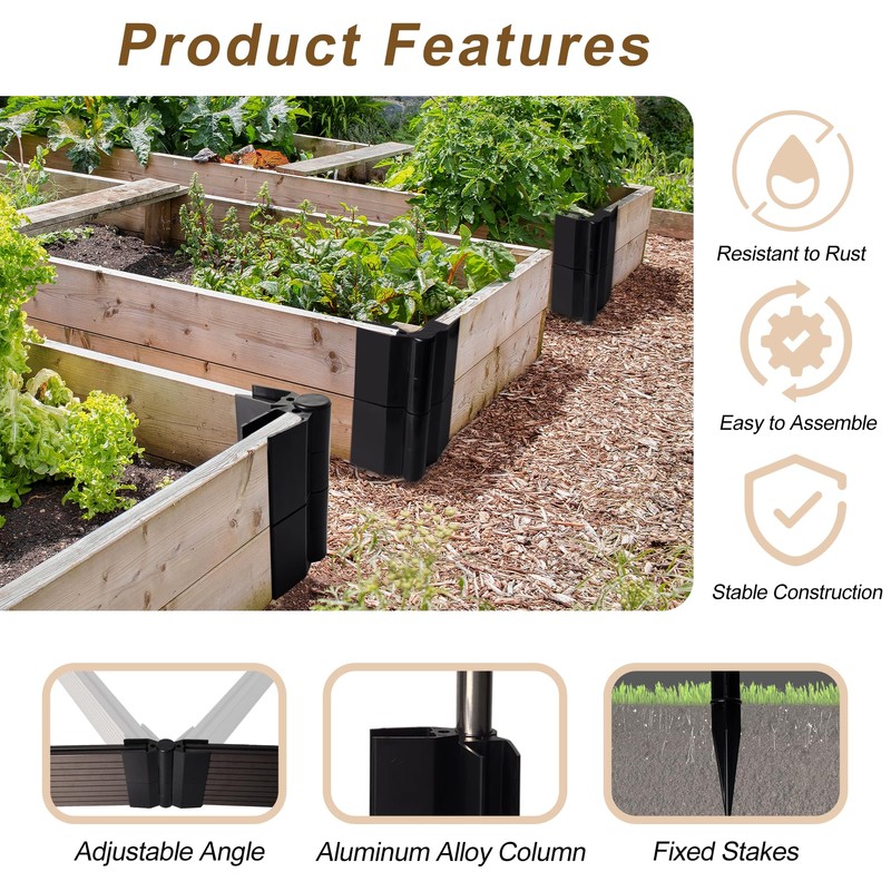 - Sturdiness & Durability: Raised garden bed corner brackets are made of 38% HDPE Plastic and 62% Wood Fibers, and the interior is made of high school aluminum alloy shaft to provide support. Sturdy and durable, the high quality material is waterproof and will not rust which offer long-lasting support.