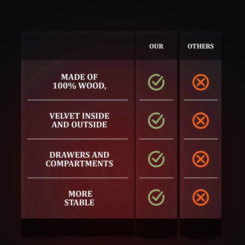 • Clever Compartment Design: The cologne stand for men with practical compartments, velvet on the top, bottom and all over to ensure your belongings are protected, and the hidden compartment on the top can be easily opened by just lifting the lid