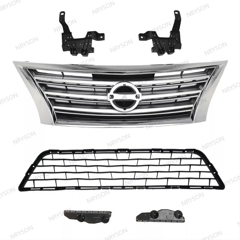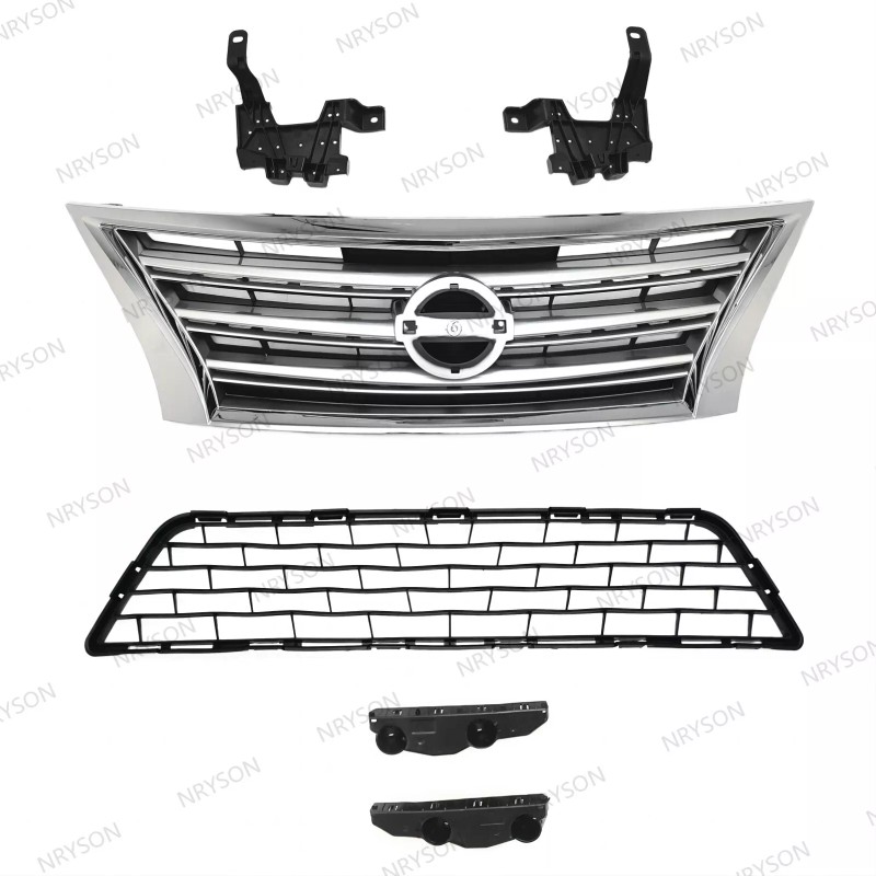 NAYSON 6PC For Nissan SENTRA 2013- 2015 Front Chrome Upper Lower Grille Bumper Brackets